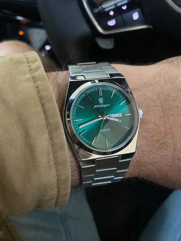 This one caught my eye — shiny, clean, and effortlessly classy. The green dial hits different without trying too hard. It keeps time perfectly, doesn’t scream for attention, and didn’t empty my wallet. My wife said it looks great on me, so honestly… that’s all the validation I need.