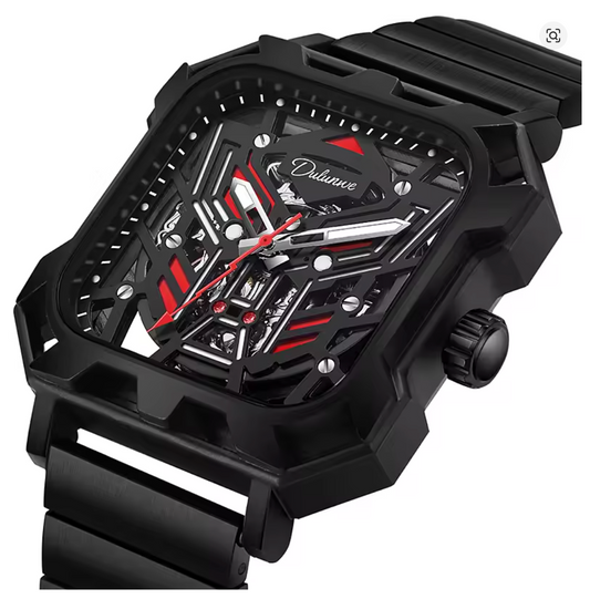 The Stratos - Square Skeleton Automatic Mechanical Watch, Stainless Steel Strap Men's Watches